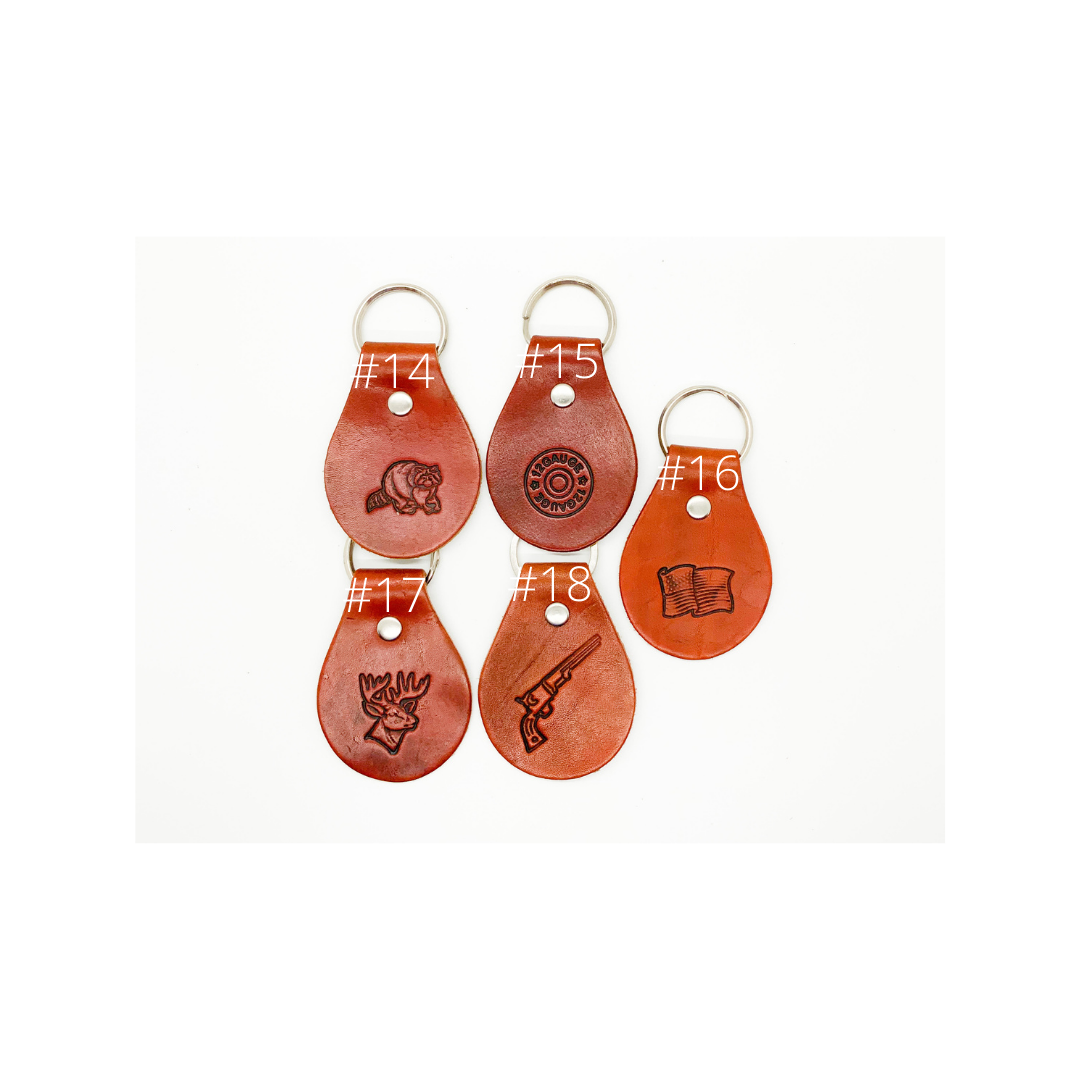 Handcrafted in our workshop located in Great Smoky Mountains, USA using full-grain-leather, APPROXIMATELY 3 1/2" LONG x 1 5/8 " WIDE featuring a split key ring and rivet for strength. Light weight, easy to carry, and will age with time. Due to the nature of handcrafting and using full grain leather slight variations from fob to fob makes each one truly unique.